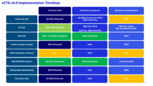 - What are the Health Authority timelines for eCTD v4.0 implementation?